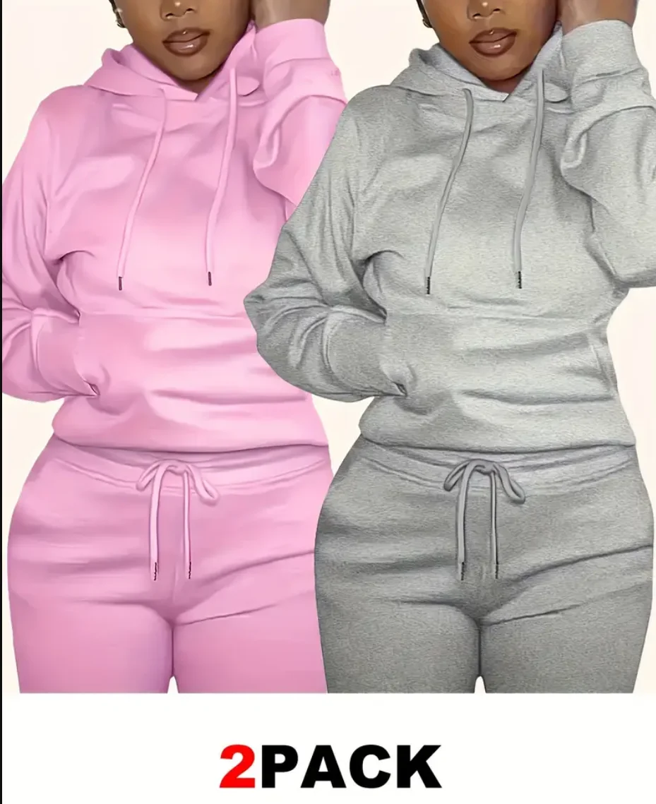 2 Pack Solid Drawstring Hoodie, Casual Long Sleeve Hooded Sweatshirt With Kangaroo Pocket For Fall & Winter, Women’s Clothing