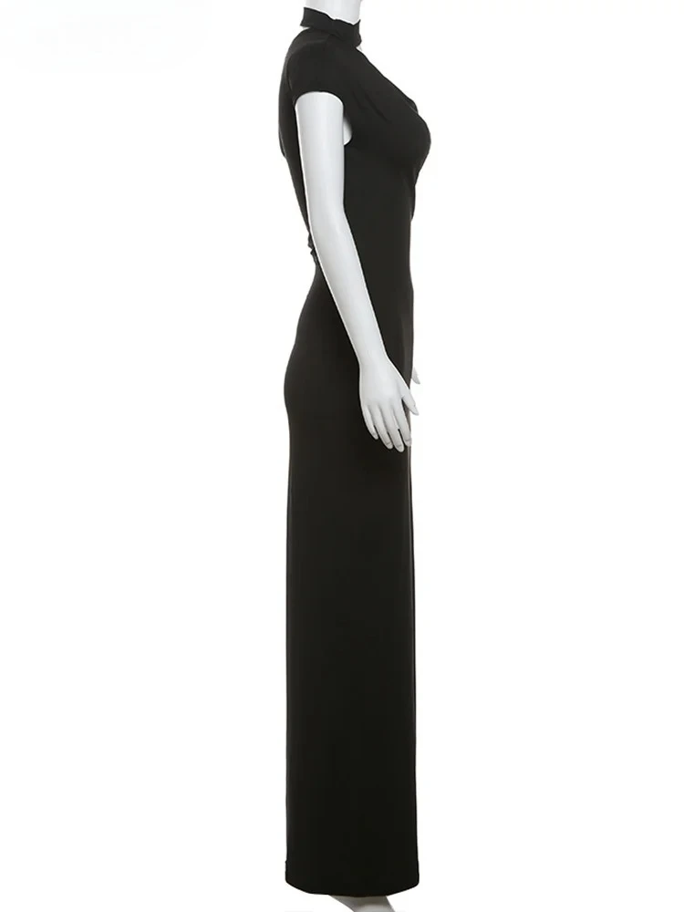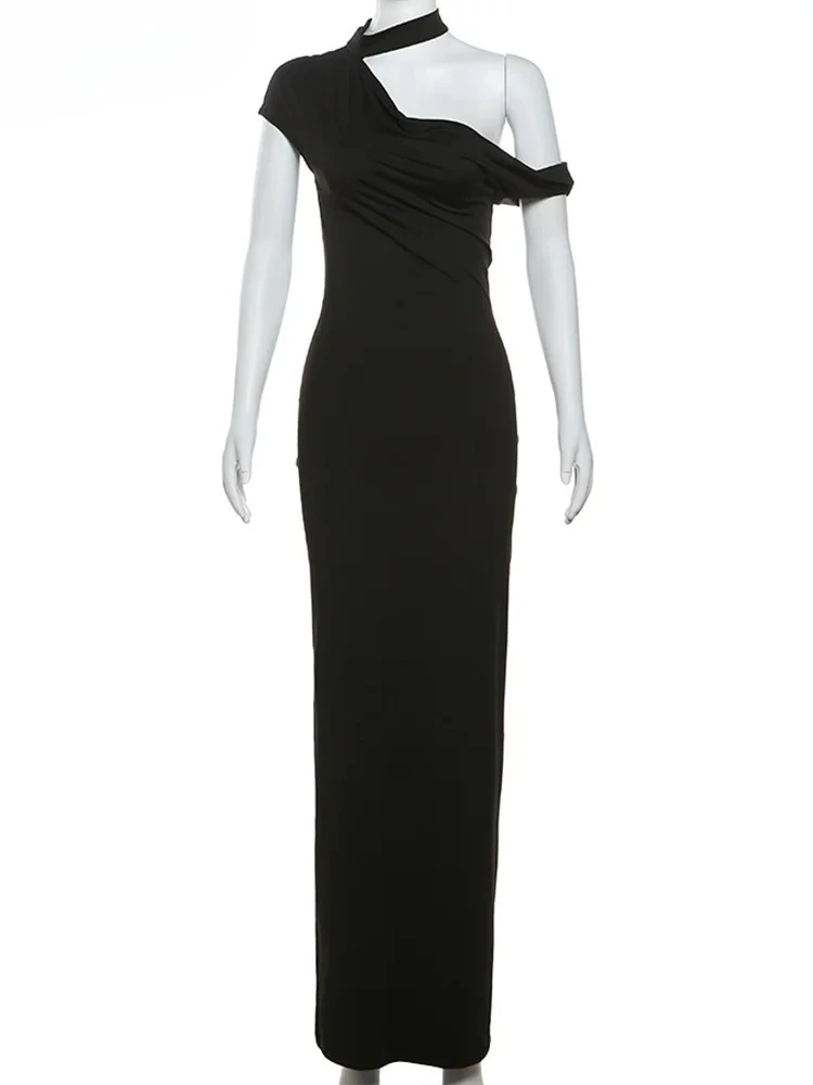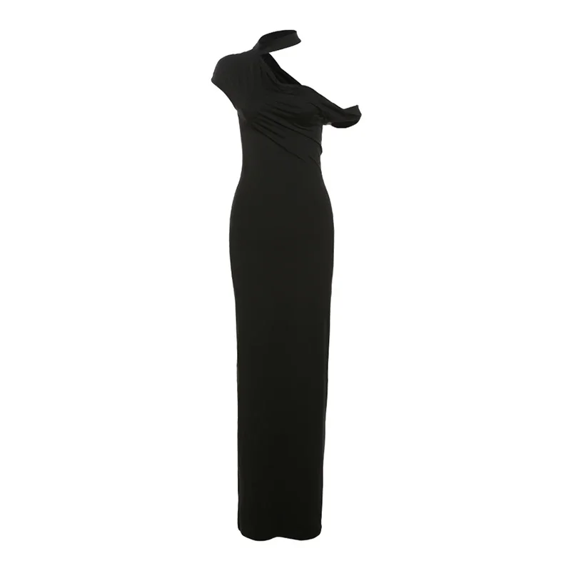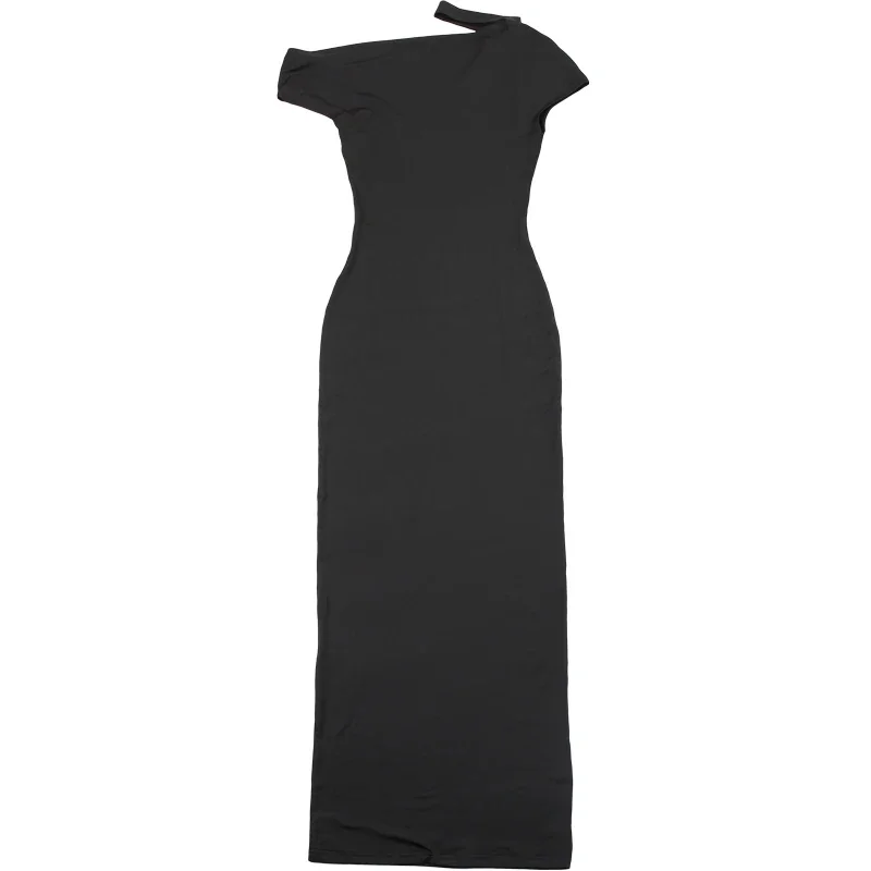 Incline Shoulder Dress Woman Summer Sexy Solid Irregular Collar Elegant Sleeveless Chic Party Skinny Evening Vestidos