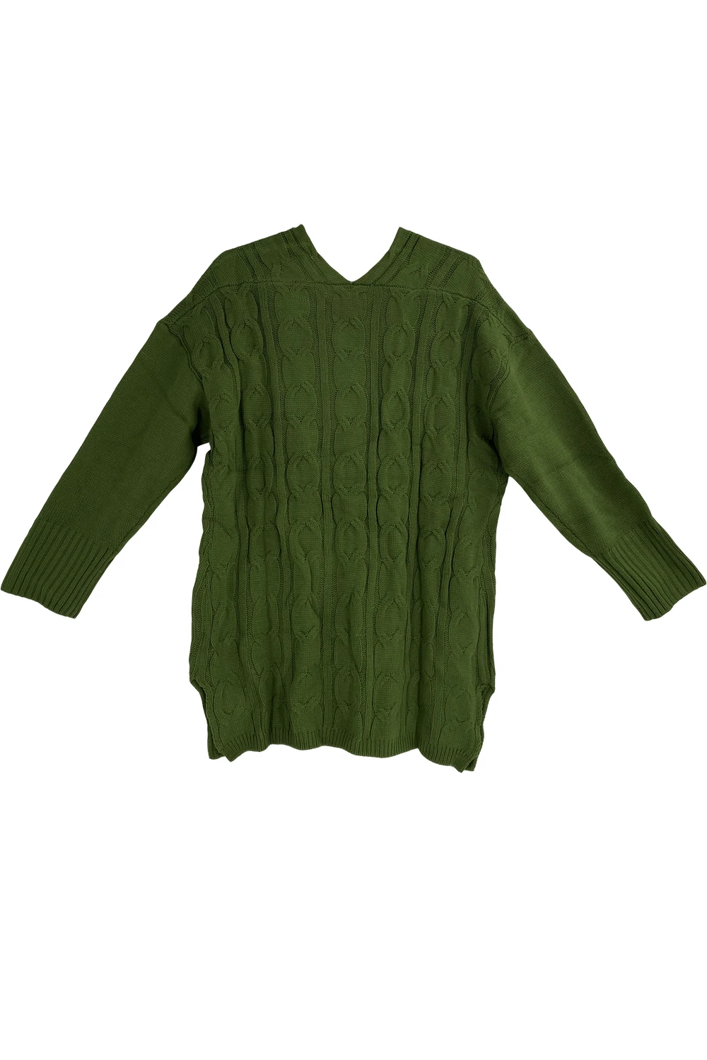 Plus Size Cable Knitted Pullover Sweater, Casual V Neck Long-Sleeved Slit Sweater, Women’s Plus Size Clothing