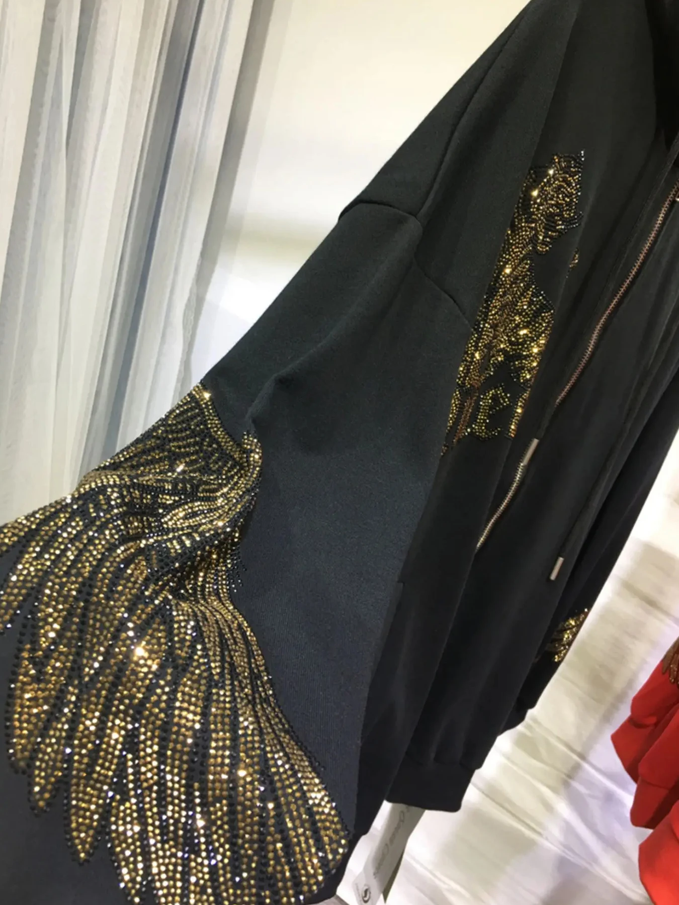 Plus Size Zip-Up Hoodie Tiger Rhinestones Graphic Top Jacket With Pocket for Women Oversized Hooded Sweatshirt Sparkling