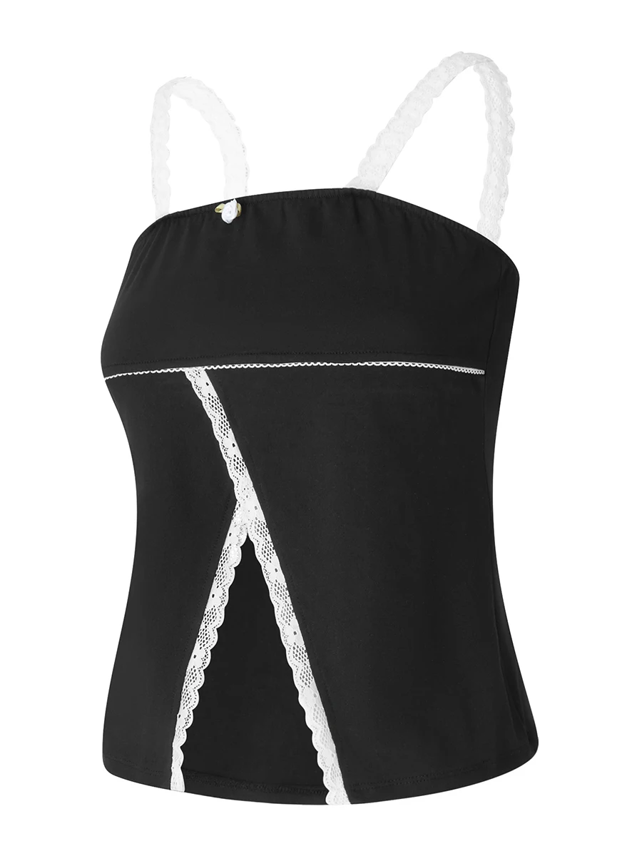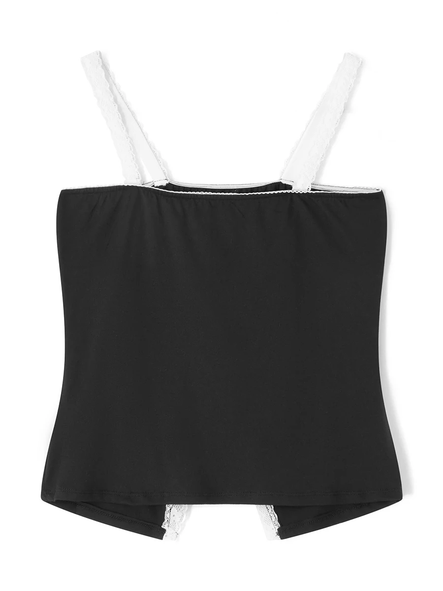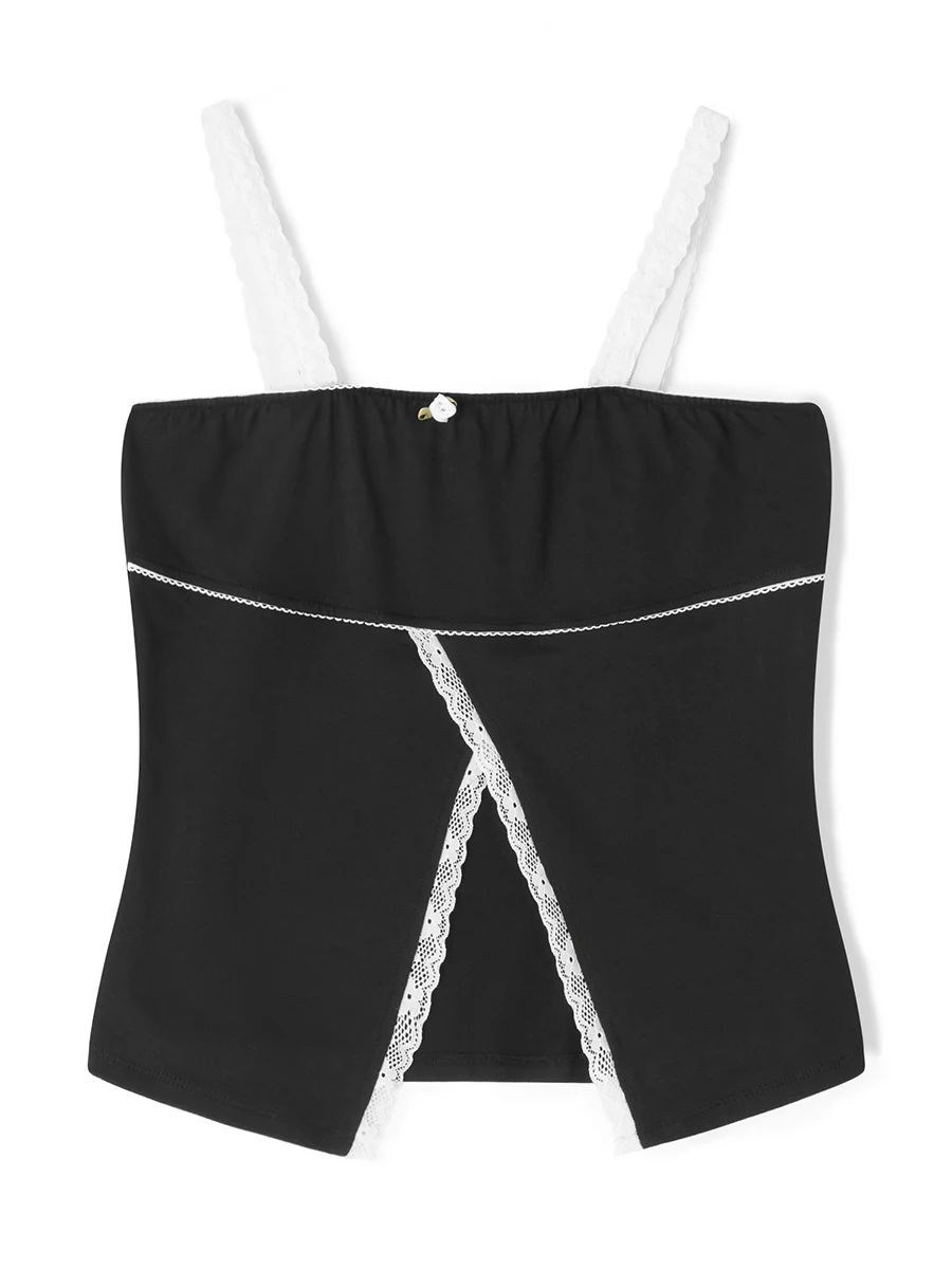 Women Camisole Sleeveless Flower Patchwork Slit Fit Summer Tops for Party Club