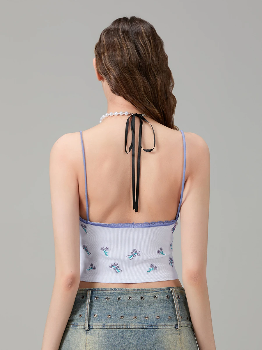 Lace trim, solid color/print, sleeveless, spaghetti straps and backless,fit, short length, summer camisole tops for women, crop camisole for women, sleeveless tops for women, charming and comfortable.