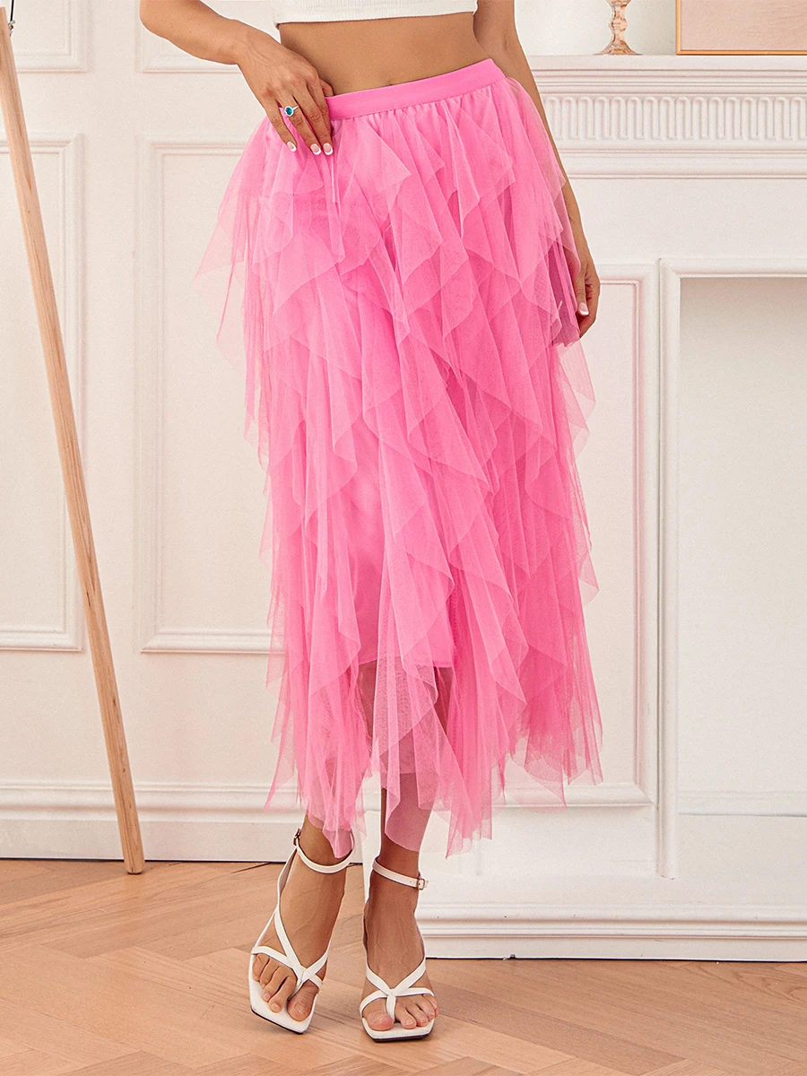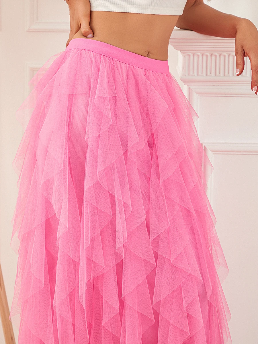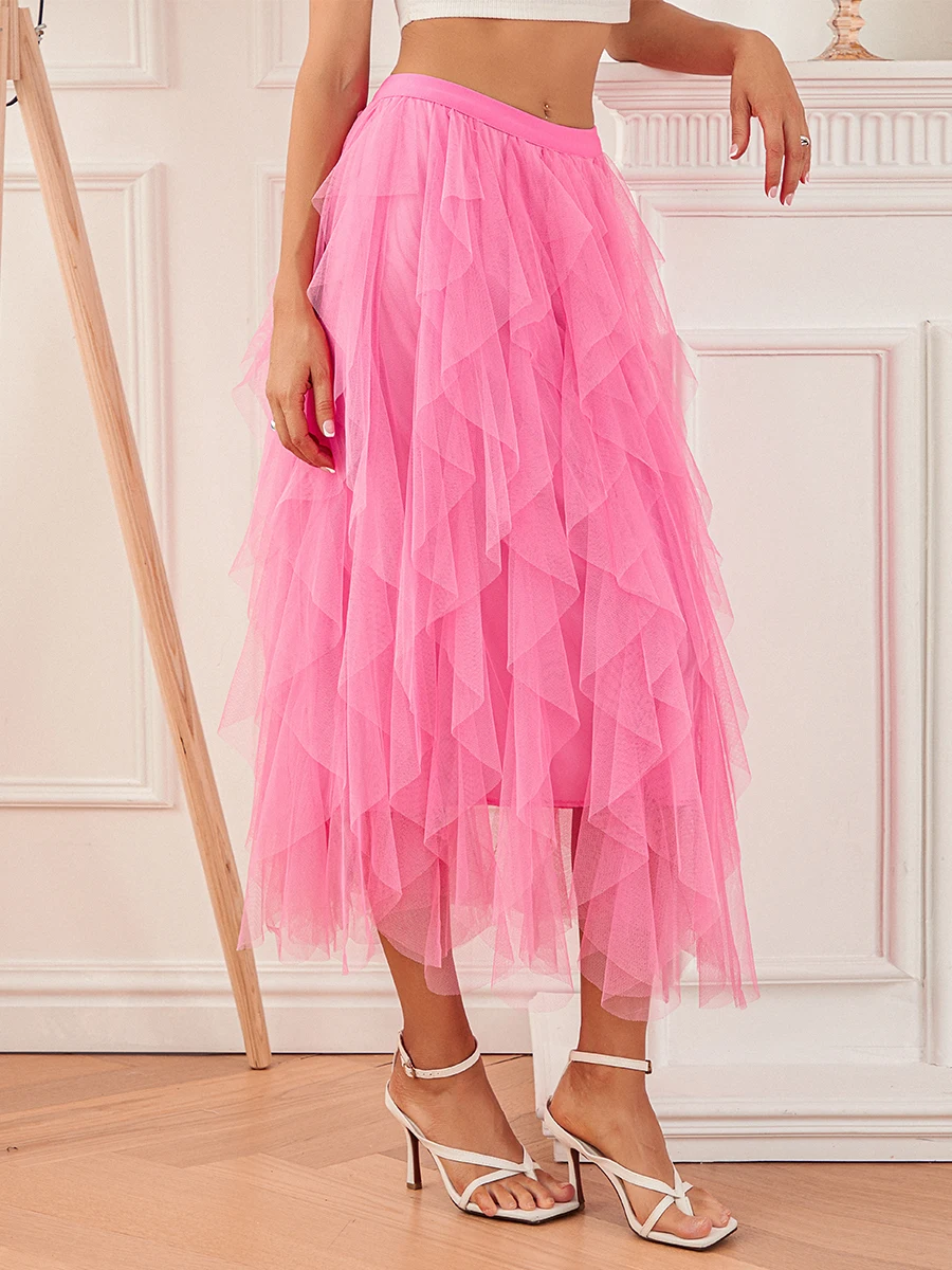 Women Long Skirt, Elegant High Waist Irregular Solid Tulle Skirt Summer Skirt for Party