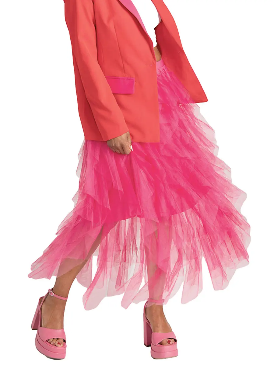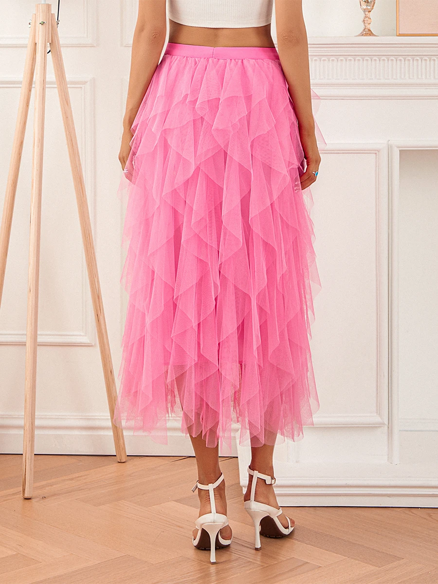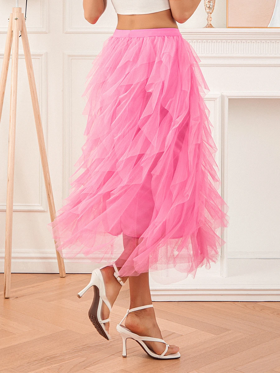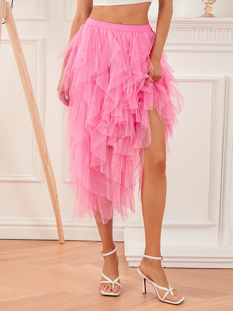 Women Long Skirt, Elegant High Waist Irregular Solid Tulle Skirt Summer Skirt for Party