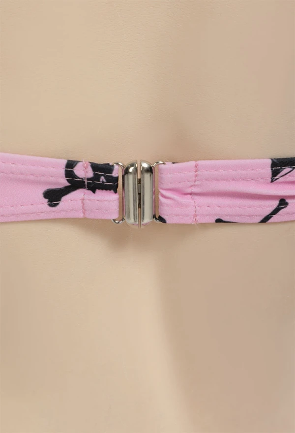 Women Swimwear Thriller Kitten Skull Cat Print Swimsuit Heart-shaped Design Pink Skeleton Cat Two Pieces Swimsuit