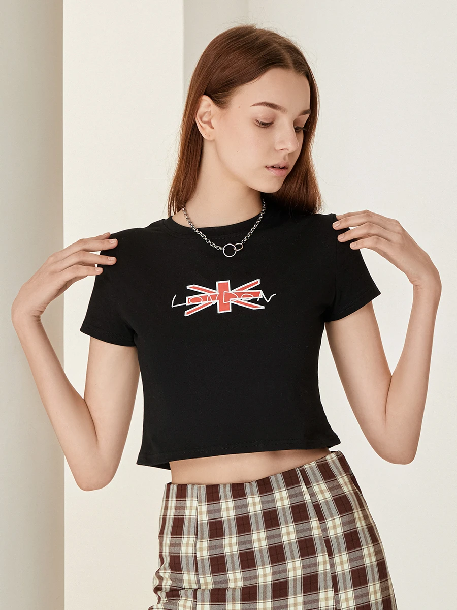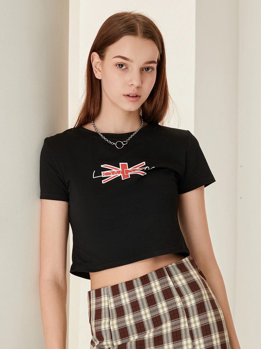 Women’s Crop Tops Fit Round Neck Short Sleeve Letter Print Short T-Shirt Graphic Tops for Summer