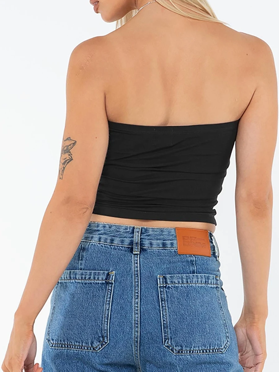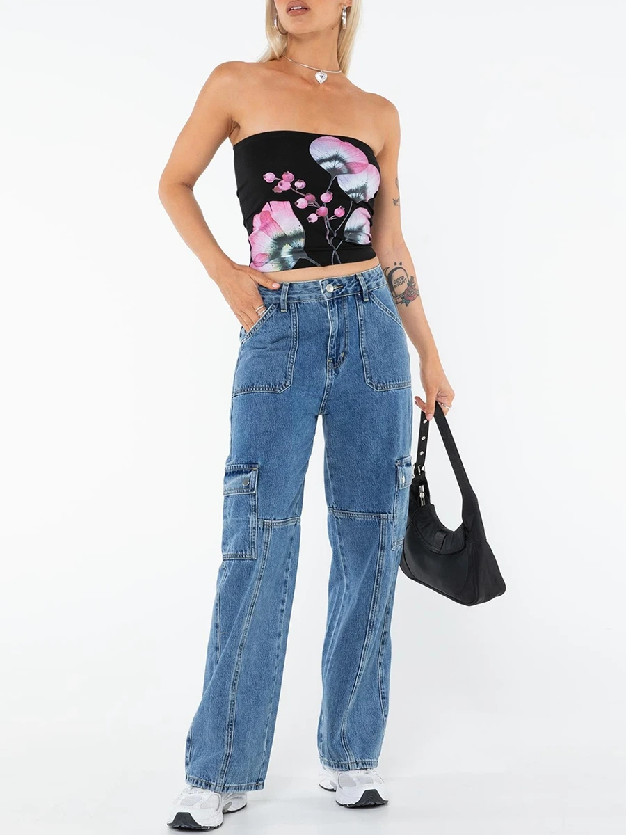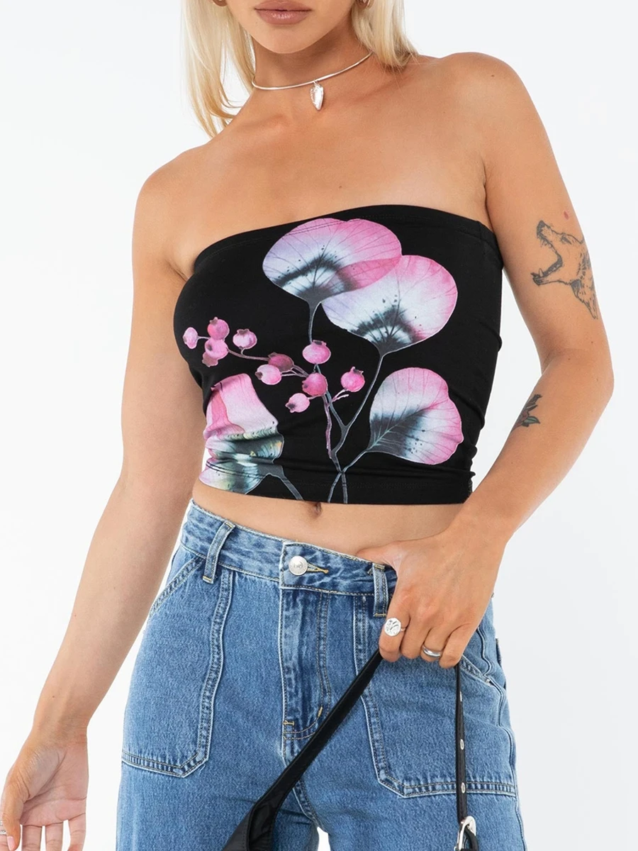 Women’s Summer Tube Tops Floral Pattern Bandeau Show Navel Crop Corset Vest